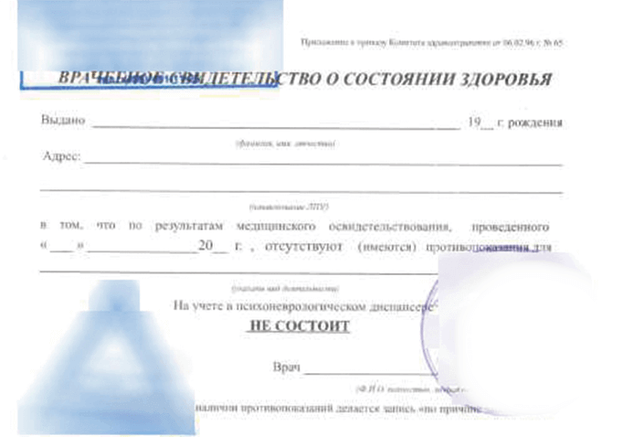 Медицинская справка ПНД содержит дату выдачи, ФИО обратившегося, год рождения и адрес регистрации. Эта информация есть на всех формах. Далее обычно идет запись о том, что человек за помощью в диспансер не обращался, на диспансерном учете не состоит. Эта информация легко проверяется по базам данным.